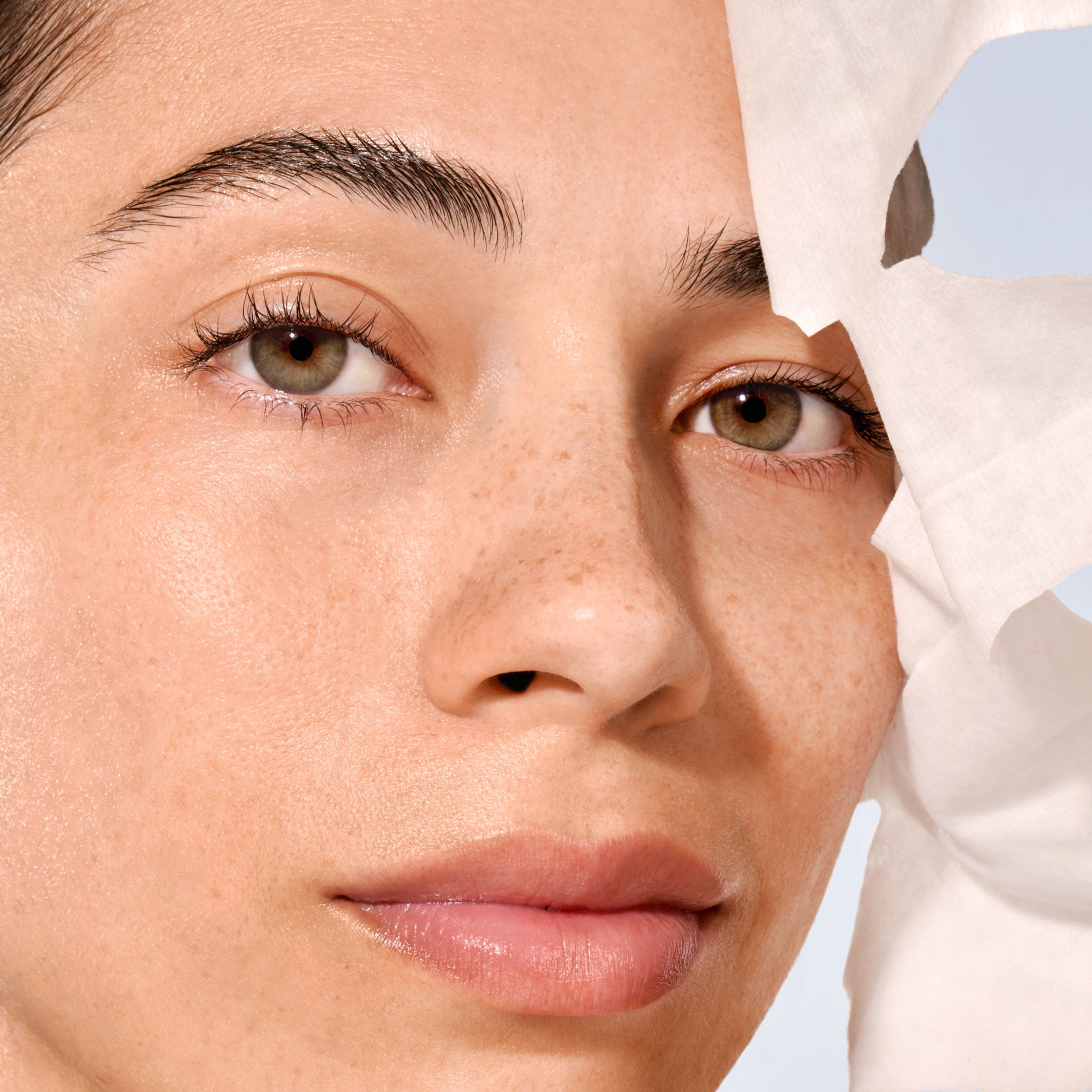 セラムが完全に浸透したら、シートマスクを肌にのせます。