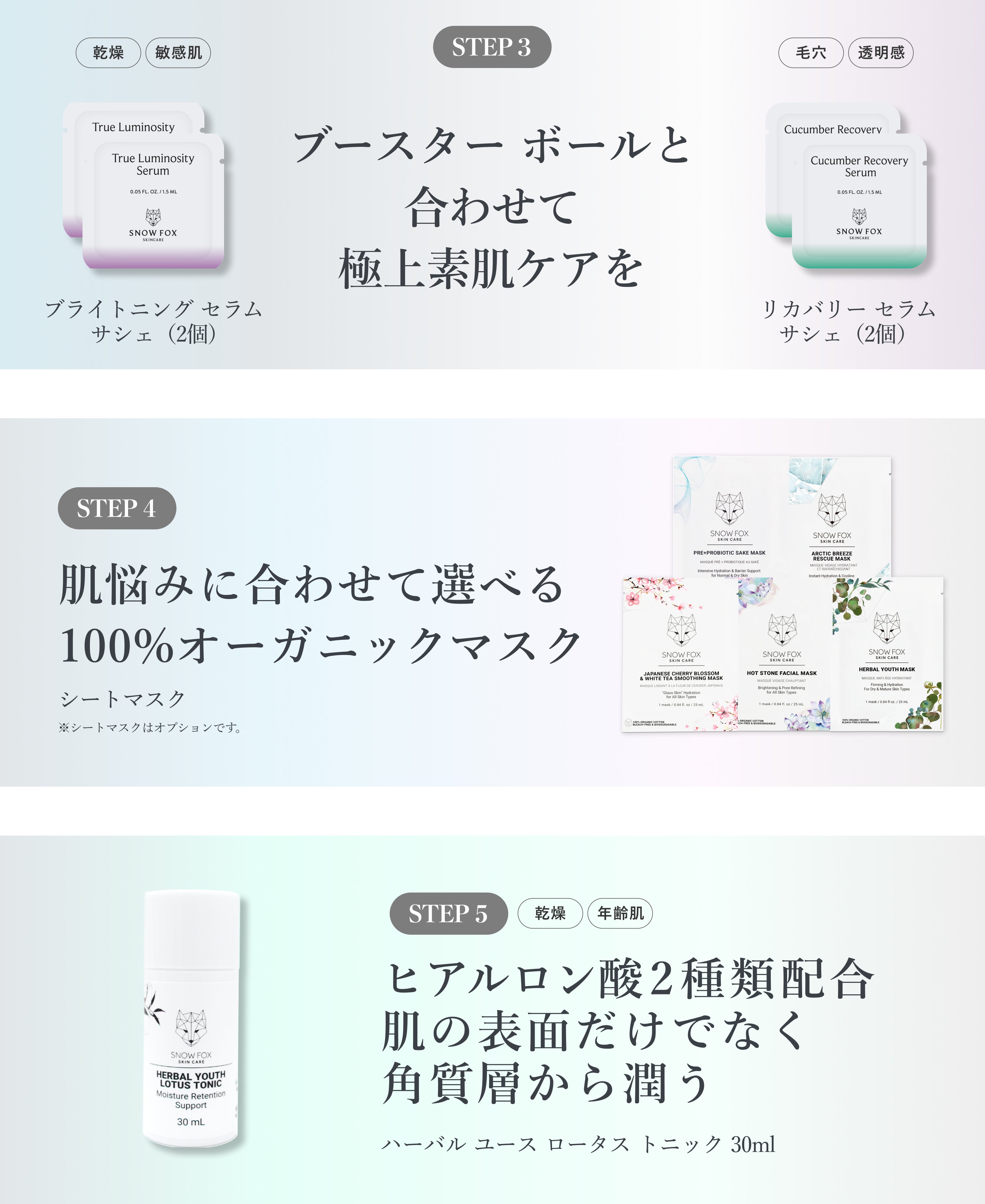 ※ブースターボールとリカバリー セラムのボトルが旧デザインとなっておりますが、使用感に違いはございません。