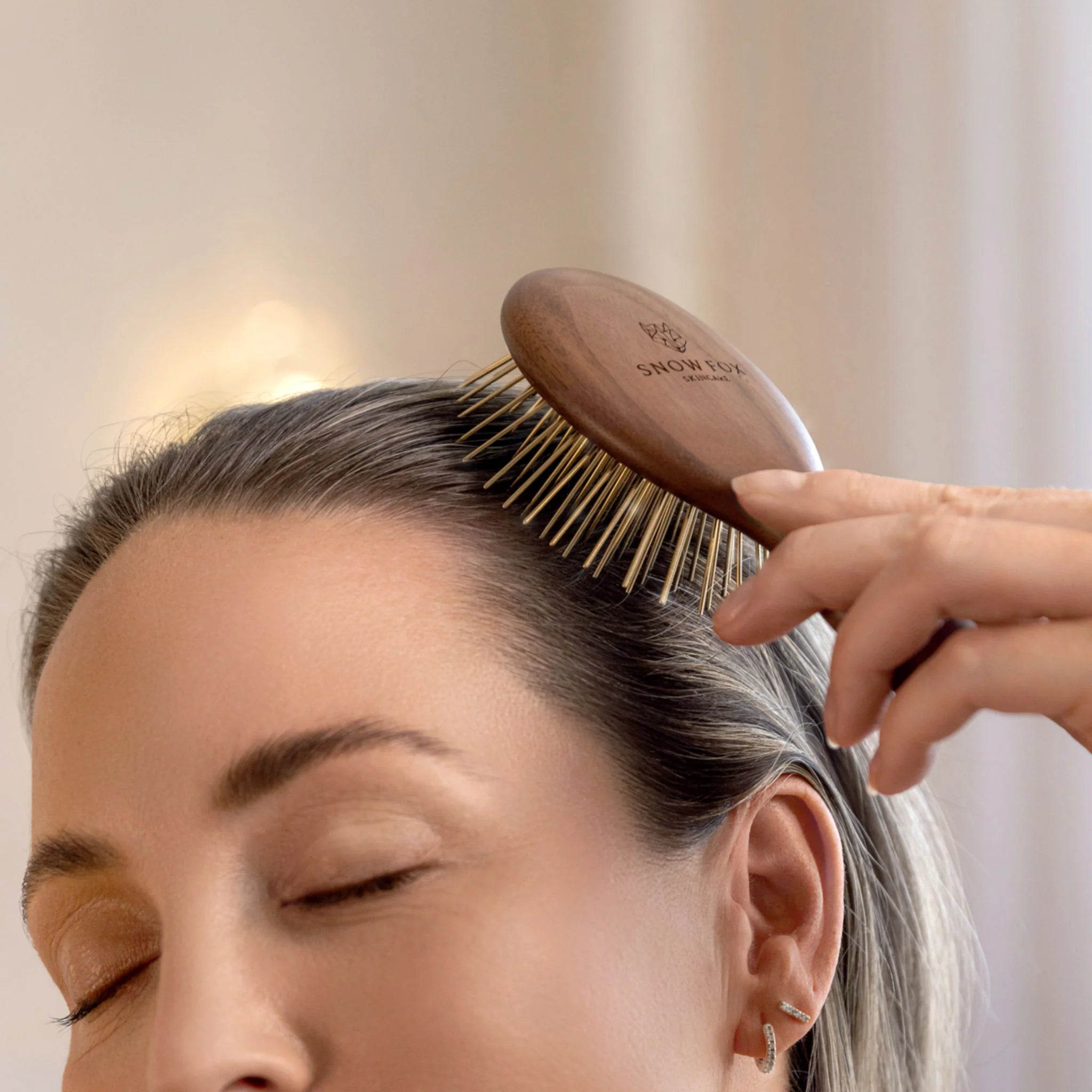 本製品の「赤外線イオン活性ブラシ」は、遠赤外線放射材とゴールドの力を組み合わせた独自構造により、ブラッシングしながら頭皮をやさしく温める特許出願技術を採用しています。