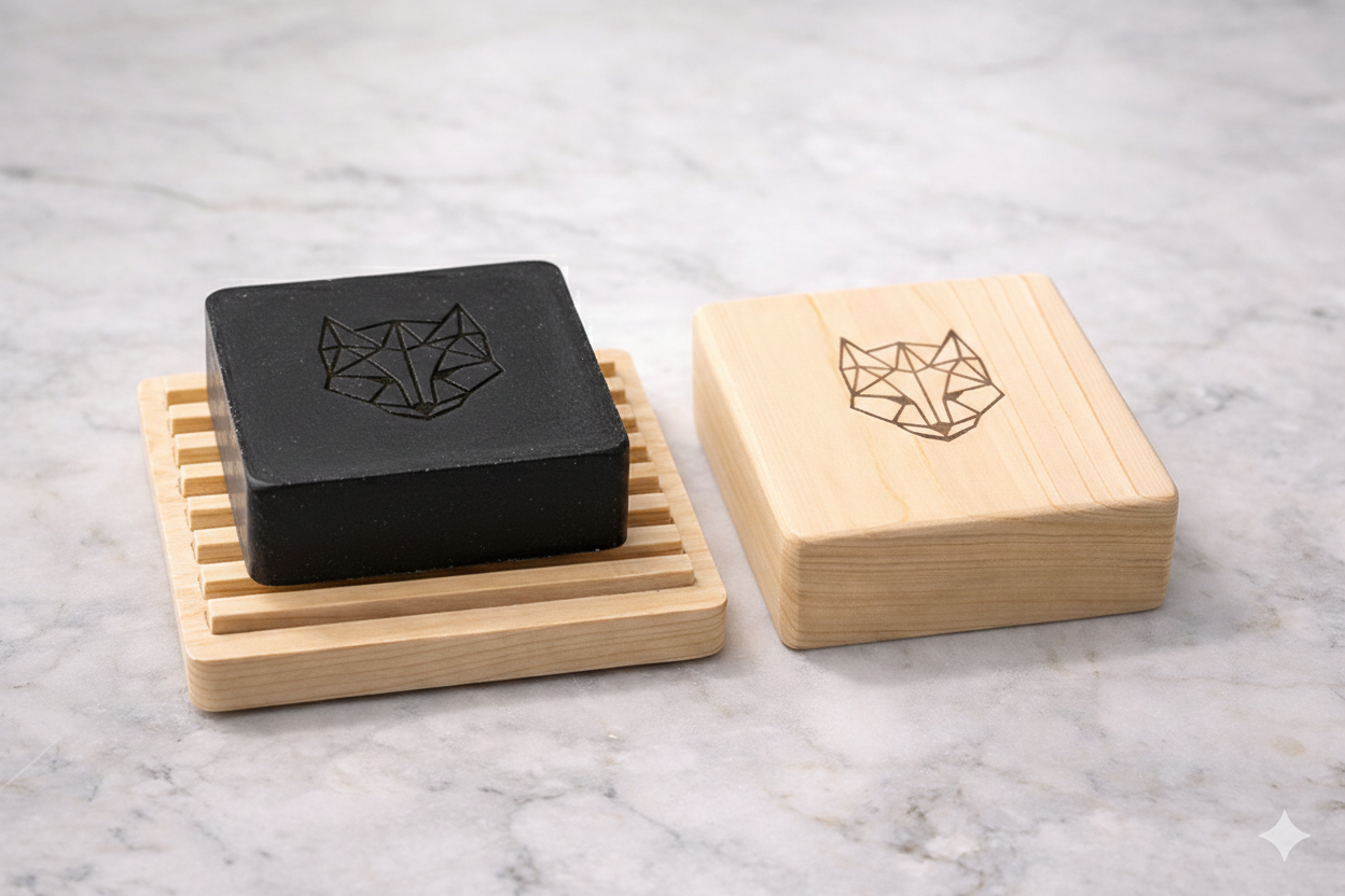 特許出願中の波型設計を採用した檜のバーケースが、水が溜まりにくく、使用後も清潔な状態をキープ。