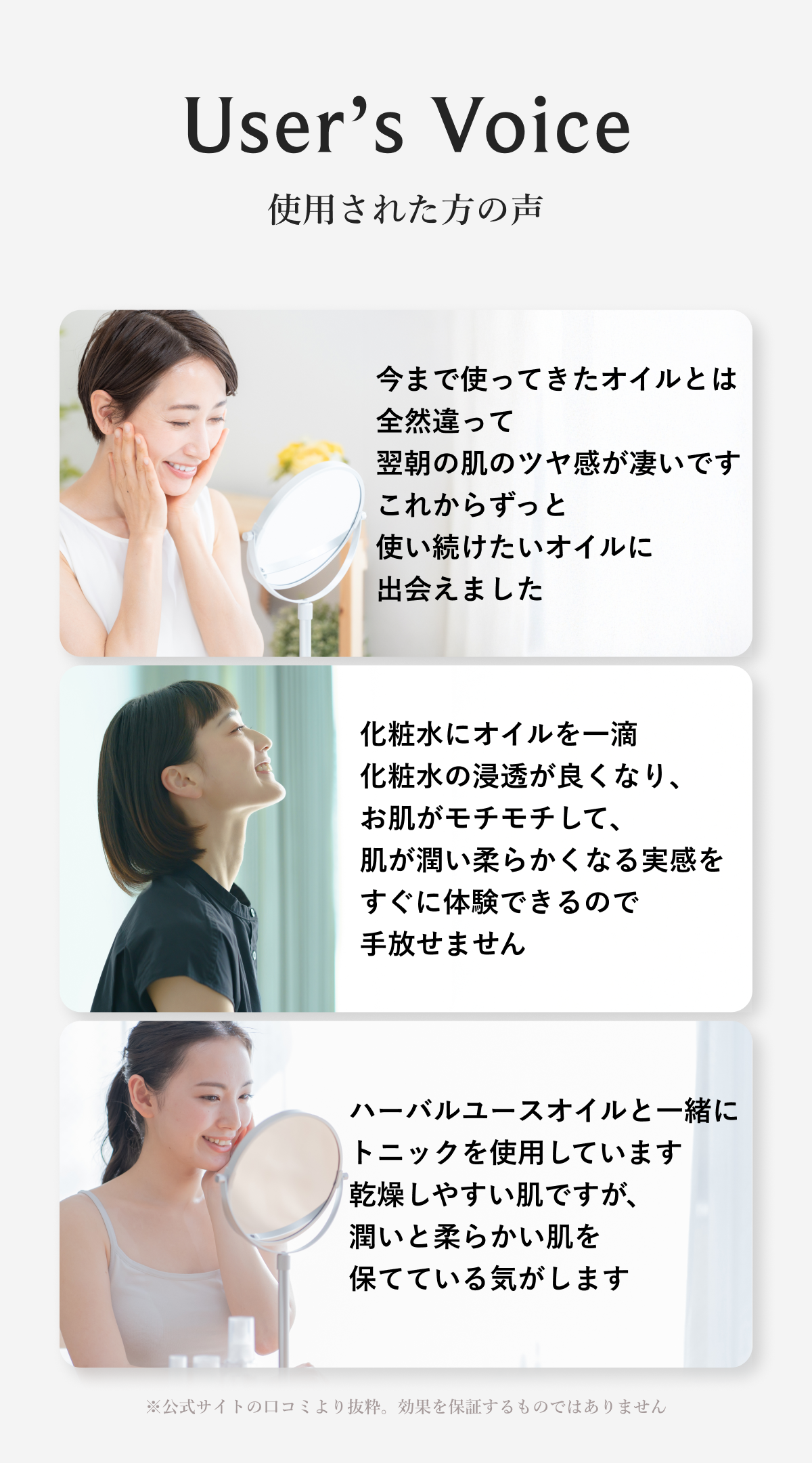オメガクリームは揺らぎにくい肌を育てる商品ですが、肌変化をしっかりと起こすクリームであることから、アレルギーやアトピー、酒さの方の場合は、その症状によって慎重にお使いいただく必要がございます。オメガクリームで肌がピリついたり、ハーバルオイルで肌が赤くなる場合は、まずはハーバルトニックで肌が水分を保持できる環境を先にお作りいただくことをお勧めいたします。